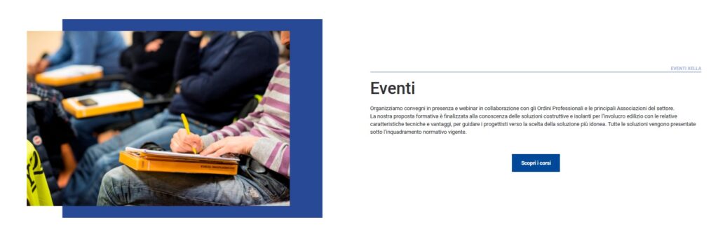 Per rendere fruibile in modo semplice al pubblico più ampio possibile questo bagaglio di conoscenza e competenze tecniche, Xella ha creato nuova piattaforma ancora più agile, completa e semplice da consultare, dove trovare tutte le novità e gli appuntamenti formativi organizzati dall’azienda o realizzati in partnership con altri operatori, per stimolare la conoscenza tecnica dei propri sistemi e promuovere le metodologie e buone pratiche di messa in opera. Il nuovo sito https://formazione.xella-italia.it/ distingue e accoglie all’interno di due macro aree le iniziative formative dell’azienda di Grassobbio, semplificando e agevolando l’esperienza di navigazione degli utenti.