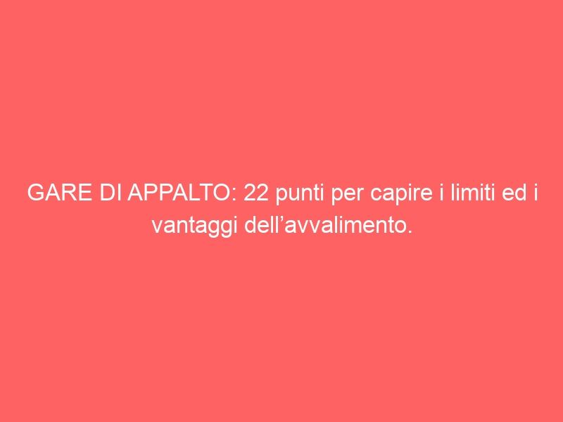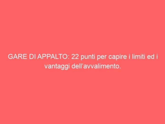 Un approfondimento dell’art. 89 del D. Lgs 50/2016 e smi, riportando in soli 22 punti fondamentali, le caratteristiche dell’avvalimento, dei suoi limiti ma anche dei suoi vantaggi di questo istituto di origine normativa europea.