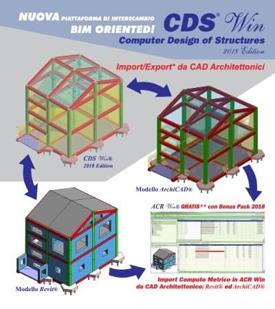 Nella release 2019 del software strutturale CDS Win, la S.T.S. ha sviluppato una procedura che consente l’import/export, all’interno dell’interfaccia grafica del programma, di un modello strutturale implementato con alcuni tra i CAD architettonici commercialmente più diffusi.