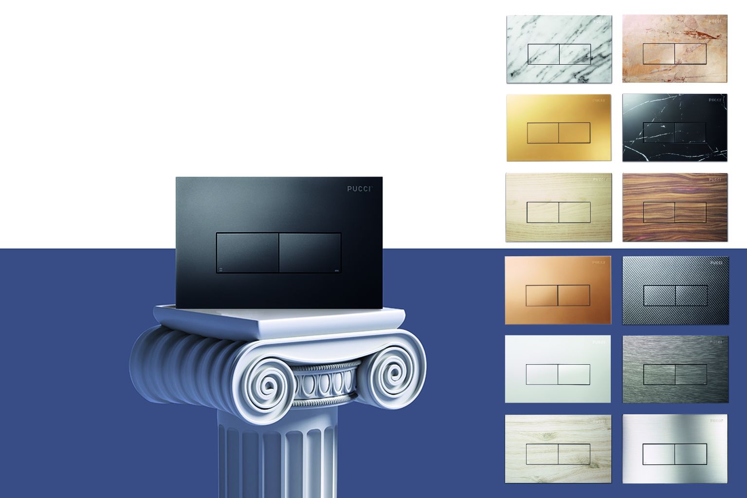 Nel giro di pochi anni la placca è stata protagonista di una rivoluzione. Da “semplice” comando della cassetta si è trasformata in piccolo ma fondamentale elemento d’arredo. Permettendo come sempre di interagire in modo perfetto e funzionale con la cassetta, la placca Pucci è diventata più piccola e molto più sottile, mentre le sue linee sono state ridisegnate secondo le tendenze del design contemporaneo. Ora la placca Pucci è disponibile in una gamma di finiture mai vista, colori, materiali, design, la scelta più ampia e libera che ci sia mai stata. È l’evoluzione del concetto di “personalizzazione” del prodotto: ognuno può trovare la placca Pucci giusta, in grado di soddisfare le sue esigenze estetiche oltre che funzionali, qualsiasi sia lo stile scelto per il proprio bagno.
