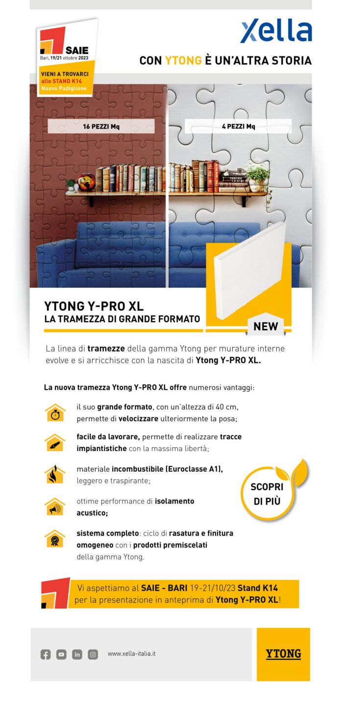 EDILBUILD PRODOTTI: Xella presenta YTONG Y-PRO XL: la nuova tramezza di grande formato